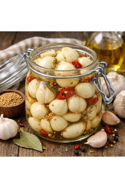 Gaziantep yöresinden doğal sarımsak turşusu, geleneksel yöntemle hazırlanmış katkısız ve keskin aromalı bir yöresel turşu üründür.