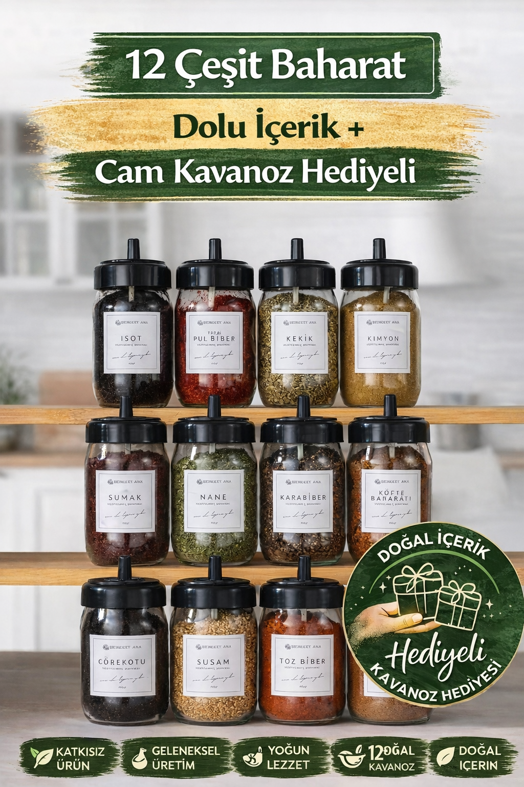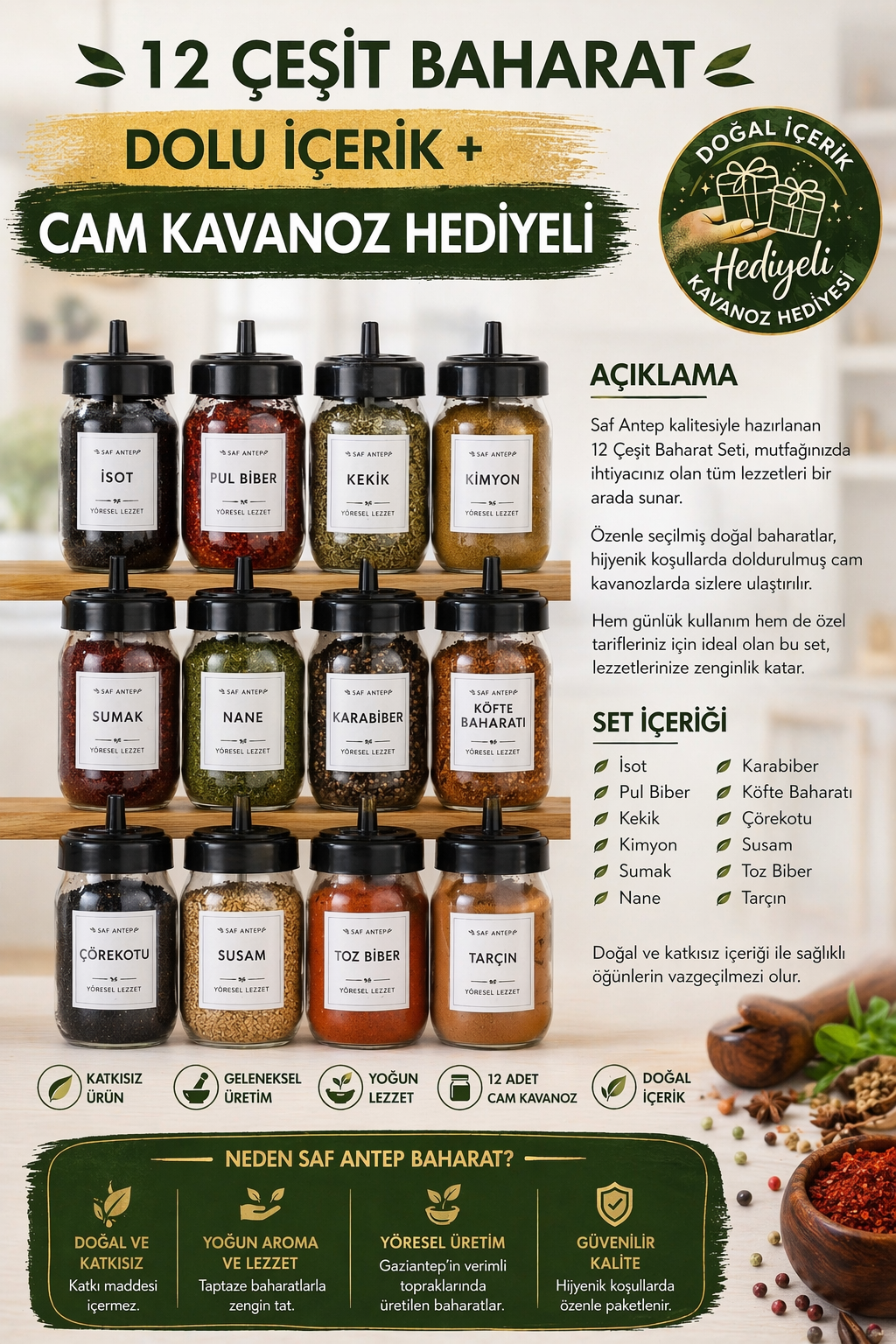 ✔ 12 çeşit dolu baharat içeriği